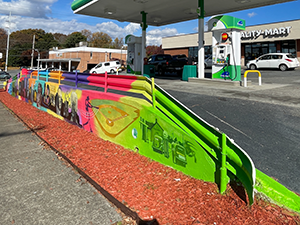 Created by Leo Rucker, learn more about the mural located at the Quality Mart on the corner of 5th and Broad Street